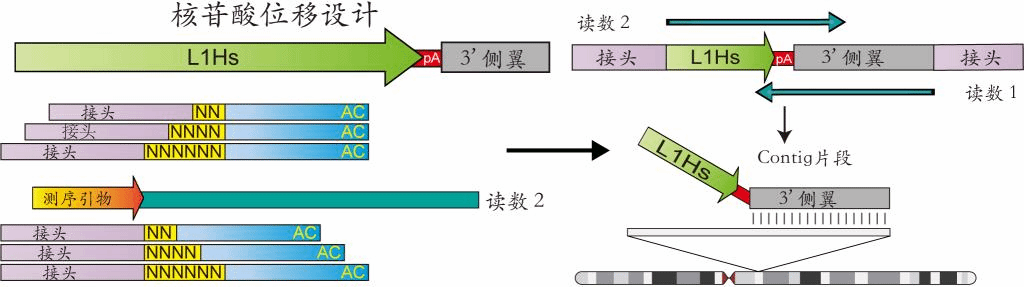 本公开内容涉及基因检测领域。长久以来,由于检测结构变异具有技术挑战,临床分子诊断通常仅针对点突变和小尺度插入缺失突变进行鉴定和解析。然而,存在大量单基因遗传病病例尚未找到致病突变。本公开内容涉及对基因组中低频突变的鉴定和定量,同时涉及对转座子生殖系和新发插入事件的检测,可用于鉴定与疾病相关的转座子事件。更一般地,本公开内容的方法提供了一个检测样本中已知序列区域内的其他突变类型的通用检测平台,因此该方法的应用不仅限于转座子事件,而是可以普遍用于鉴定其他生殖系和低频突变事件,例如SNV和indel等。