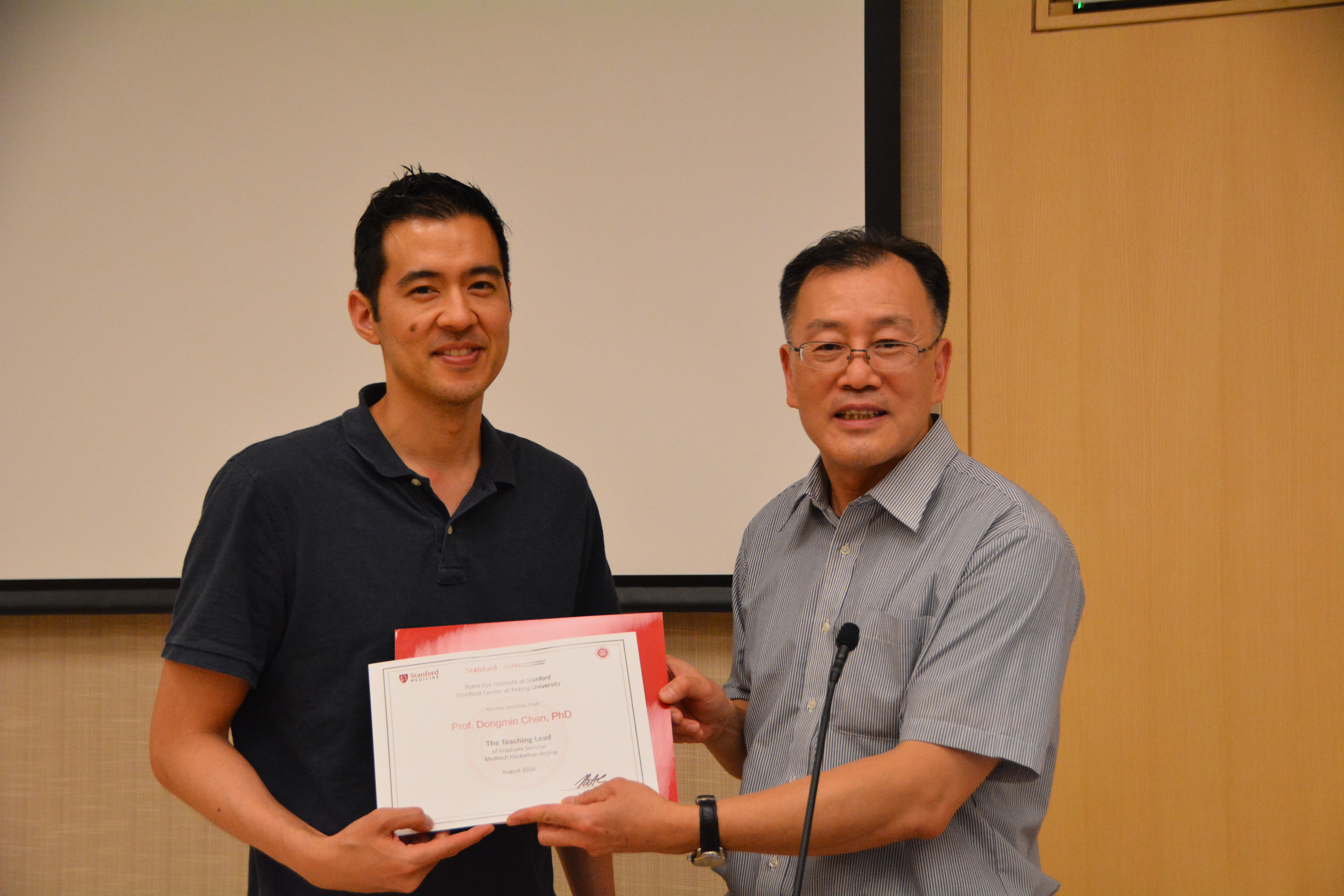 由北京大学与美国斯坦福大学共同主办的“2016 China Digital Healthcare Boot Camp”,于8月27日圆满结束。本期培训的课程设计与主讲是由斯坦福Robert Chang和北大产业技术研究院黎怡兰教授负责,还包括学者与专家们的讲座。北大产业技术研究院院长陈东敏教授在课堂上进行专题演讲,得到学生们的热烈欢迎。