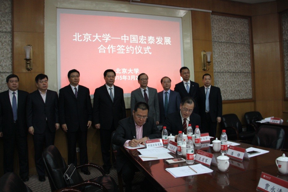 3月27日下午,中国宏泰产业市镇发展有限公司(简称“中国宏泰发展”)与北京大学产业技术转移战略平台(中心)合作协议签约仪式在北京大学办公楼举行。廊坊市委书记王晓东、市长冯韶慧、河北省发改委副主任党晓龙、中国宏泰发展董事局主席王建军率团来访,北京大学校长林建华,产业技术研究院院长、科技开发部部长陈东敏等领导出席签约仪式,王晓东书记与林建华校长分别讲话。