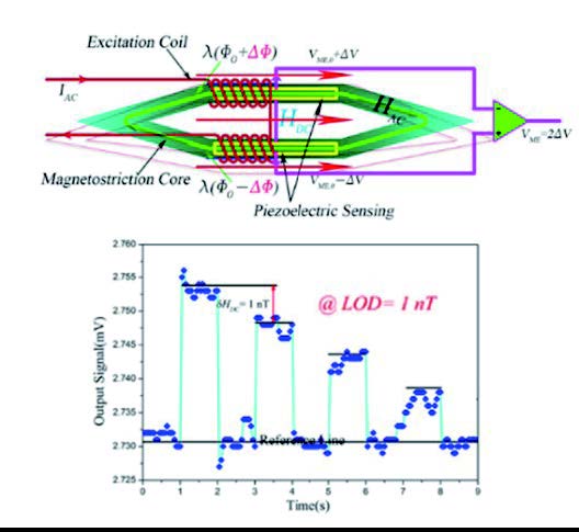 基于磁电耦合效应,该项研究课题组首次提出了磁电磁通门的结构设计,旨在对微弱直流磁场进行探测。这个磁电磁通门具有梭形结构,对于1nT的直流磁场输入,磁电磁通门输出信号的相对变化相比现有的结果提高了4-5倍,为磁异常探测在导航、医学诊断等领域的应用创造了可能。